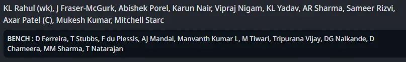 Delhi Capitals have performed well this season and are currently ranked 2nd in the points table. As of April 15, 2025, they have won three and lost two of their last five IPL matches, including victories over strong opponents like Chennai Super Kings and Royal Challengers Bengaluru, but recently lost to Mumbai Indians by 12 runs.Lokesh Rahul has been the team’s standout performer, leading them with 520 runs in T20 competitions over the past year, averaging 37.143. Rishabh Pant follows closely in the batting order, contributing 446 runs. At the bowling end, T Natarajan (19 wickets) and Mukesh Kumar (17 wickets) have been excellent, providing consistency with their reliable performances. While the team’s batting unit is highly aggressive and has posted 200+ scores on multiple occasions, they need to improve their overall stability to balance their gameplay.
