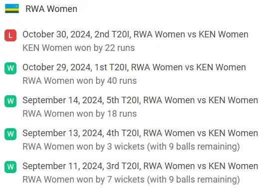 Rwanda Women: Rwanda was in excellent form, achieving 4 wins and 1 loss, showing strong momentum in the series.