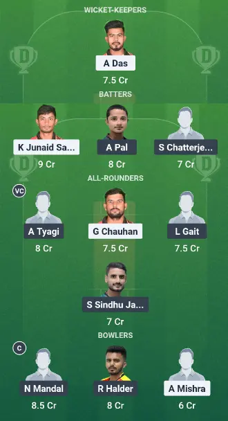 Sumanta Gupta, Siddharth Patidar,Abhishek Das (wk) Gaurav Chauhan, Sayan Mondal,Kazi Junaid ,Saifi Shahbaz Ahmed, Saikat Das, Pritam Chakraborty, Ravi Kumar,Ashutosh K Chaudhary